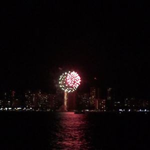 また、金曜特典でヒルトンからの打ち上げられる花火を船上から見ることもできました。