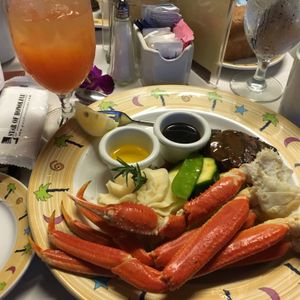 窓際席でなくとも、サンセットが綺麗に見えて、フラのショーを見ながらのディナーではカニの食べ放題にしたのですが、身も詰まっていて、とてもおいしかったです。