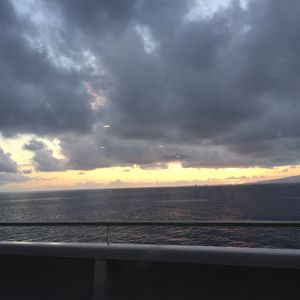I went on my first cruise with my daughters, who are 4 and 6 years old. Unfortunately, it was cloudy, so we couldn't see the sunset, but since it was Friday, we were able to see the fireworks from Hilton, which was really nice. There was live music throughout the ship, and there was also a Hawaiian show, making it a fun time!