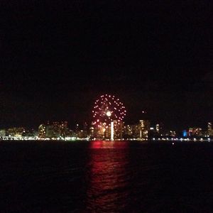 あいにく曇りだったの為サンセットは見れませんでしたが、金曜日ということで船上からヒルトンの花火が見れてとても良かったです。