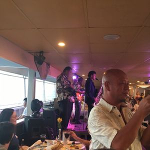 The ship has different rooms based on the meal courses. After being shown to my seat, I was a bit unsure about when to go get the buffet food, but since I had read reviews on this site, I decided to wait until someone called me and then go get the food in order. The food was just okay. When boarding, the crew welcomes you with a dance, and during the meal, there is live guitar music and you can enjoy Polynesian dance as well. In the end, the guests also participate in the dancing, which made it a lot of fun!