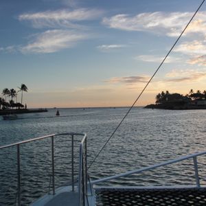 せっかくハワイに来たのだから、海と夕陽を見てみたいと思ったので、このツアーに参加しました。当日は少しボートが揺れたのですが、私達は酔うこともなく、食事を頂きました。サラダや揚げ物など美味しかったです。そして夕陽は本当に綺麗で、水平線から見る夕陽は格別でした。カップルには特にお勧めかもしれないです。
