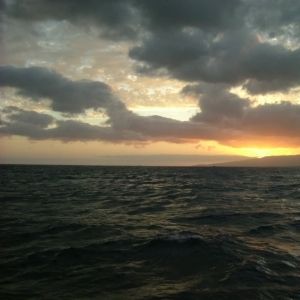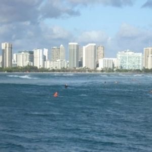 海から見るダイヤモンドヘッドや立ち並ぶホテルは大変きれいでした。海の色も紺碧でラピスラズリを思わせて神秘的でした。だんだんと日が沈んできれいな夕焼けが感動的でした。釣竿を出している方がありましたが残念ながら魚は釣れませんでしたが、一緒に乗った外国人のファミリーに写真を撮ってもらったりしてみんなフレンドリーでした。