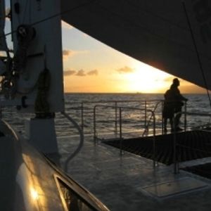 6月24日のサンセットクルーズに夫婦で参加しました。思ったより小さいかなと思いましたが帆を張るとスピード感もありさわやかな風が気持ち良かったです。軽食と2ドリンクが付いていて、私たちは早めに食べ終えて海からのワイキキビーチやダイヤモンドヘッドをゆっくり見ることができました。夕方は風がやや寒いのでカーディガン等軽く羽織る物を持っていた方がいいですヨ。