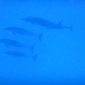 たくさんのイルカが群れを成して足の直ぐ下を泳いで行きました。