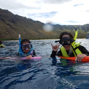 この度はご家族皆様でツアーに来てくださり、ありがとうございます。満ち潮で難しいコンディションでしたが、10歳と6歳のお子様も頑張って泳いでくれましたね。今回は亀さんをお見せ出来ませんでしたが、次回こそは見つけてあげたいと思っております。ぜひハワイにお越しの折には皆様でリピートしてくださいね。いつでもお待ちしております。本当にありがとうございました。Mahalo!!