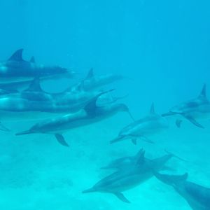 イルカを海に入って間近で見ることができてとても感動しました。途中小さいお子さんが泣いてしまったのですが、そのおかげでイルカが近くに寄ってきてくれたみたいで、イルカの優しさにも触れられました(^^)