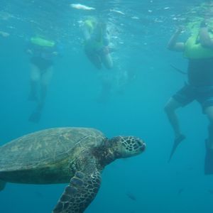 On my first trip to Hawaii, I absolutely wanted to visit the heavenly sea. On the day of the trip, the weather was cloudy, and I couldn't see the beautiful ocean scenery I had hoped for, but by the time we went snorkeling, it cleared up, and I was so happy to swim in the crystal-clear water with sea turtles and fish. My husband is not a strong swimmer, so I was anxious about snorkeling alone, but the staff were kind and provided great guidance, allowing me to enjoy swimming. The snacks were also delicious. I definitely want to go again.