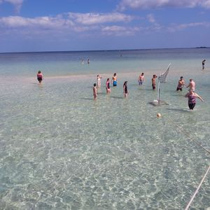 Despite the cloudy and Rainy conditions the staff made it an excellent and enjoyable experience! The sandbar volleyball was fun! The only critique I would have is to clean the bathrooms more regularly as they were backed up and it made the whole inside cabin smell.