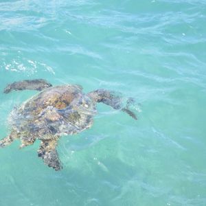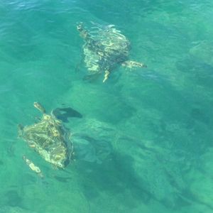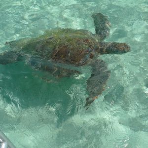 亀をウォッチングするポイントでは10匹くらいぽこぽこ頭が見えたり、船の近くを泳いでるのを見れました!写真を撮るのは難しかったです。