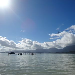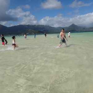 Previously, when I went snorkeling in Ko Olina with a major travel agency's optional tour, I was very disappointed because I hardly saw any sea turtles or fish. However, on this Heaven's Ocean tour, I was really happy to see many sea turtles and beautiful fish. It seemed like we arrived at the sandbar a little early, but we were able to sit together as a family on the water and take photos.