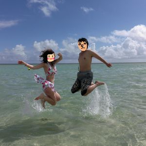The sandbar was about knee-deep, but since I had researched it in advance, it was no problem! I had a great time playing balance games on the board and splashing water with the staff.