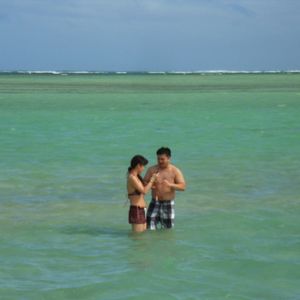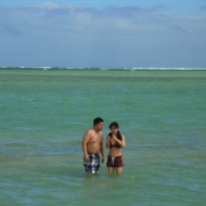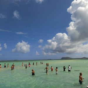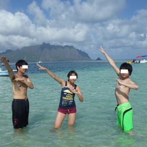 I had been wanting to go to Hawaii for a long time, so I applied without hesitation. Since the plan was dependent on the weather, I was aware of the risks, but luckily it was sunny and the weather was very pleasant. However, the wind was strong, and my hairstyle was a mess. As a result, to reach the water level up to my knees, I had to walk while getting soaked up to my waist, so a swimsuit is definitely a must. My friend and I enjoyed walking in our pants, completely drenched, up to the knee-deep water. Although we couldn't see the "land," it was a unique experience that brought me great satisfaction.