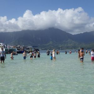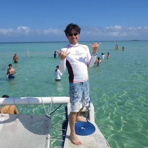 I participated with my mother and sister. Since it was their first time in Hawaii, I thought my sister would want to go snorkeling and my mother would enjoy the beautiful scenery, so we joined this tour. We were picked up at the Ambassador Hotel and transferred to a large bus at the Sheraton Hotel to set off! The bus was freezing cold, and my sister, who was wearing short sleeves, was feeling chilly. We arrived at the port on time. The waves were calm, and thankfully, there was no seasickness, thanks to the fun staff, and we quickly reached the turtle watching point! We saw sea turtles, but just for a moment! Their heads popped up briefly. We saw a few, but I think it would be difficult to take pictures. My mother, who expected to see the turtles up close, was a bit disappointed. Next, we went to the sandbar! We had 40 minutes there. First, we took photos! It felt very free, as everyone could do their own thing. The staff took pictures, so couples and groups could get photos together. I thought about wearing clothes, but since the water was up to my waist, I went in my swimsuit. Standing in the middle of the ocean was truly magical! Next was snorkeling. We swam along a rope to avoid disturbing the current. I think beginners should wear life jackets. They only explained how to breathe, and there was no actual practice. My sister, feeling confident since it was her second time, struggled to breathe and almost drowned, which made my mother and me burst out laughing! Snorkeling was really enjoyable, and we saw lots of small fish. I had so much fun that I wanted to do it more. On the way back, we filled our stomachs with sandwiches and warm tea, laughed at Yukiko's stories, and arrived at the port. On the bus, I fell into a deep sleep, probably from waking up early and swimming. It was a great tour that ended on time in the morning, allowing us to use our time meaningfully. However, there were really a lot of newlywed couples! If you want to snorkel a lot, a full-day tour might be better. The bus driver on the way back was a native speaker with excellent pronunciation and was somehow very high-energy! We laughed again! On the return bus, we had to raise our hands to indicate where to get off. I think the Sheraton will stop properly, but we almost missed the Ambassador stop because of the excellent pronunciation! Since we got back on the bus wet, I recommend bringing a long-sleeve cover-up and a bath towel. This tour was well-organized, and we had a meaningful time; it was truly enjoyable. It became a wonderful memory.