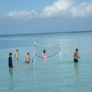 Playing beach volleyball while being submerged up to my waist was quite tough, but I was able to enjoy playing with other guests I met for the first time.
