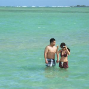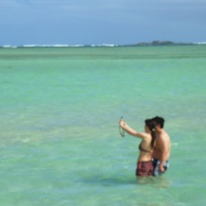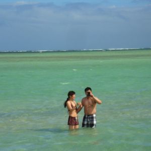 サンドバー自体は干潮さえつかめばくるぶし丈ですが、船はそのもっと手前で止まるのでどうやっても腰の下くらいまでは濡れます。スノーケルをやらなくて、ちょっとサンドバーにおりてみたいだけ、という方でも事前に水着を着用した方がよろしいかと。