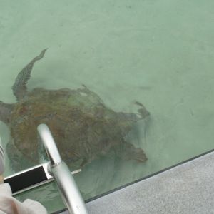 We don't keep sea turtles, but they are friendly and come to visit us almost every day!