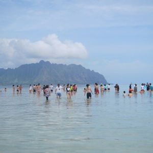 事前に干潮時間を調べて行きました。期待通り、とても素晴らしい景色で、最初足を着けたところは膝ぐらい水位があったものの、一番浅いところは足首くらいの水位でした。最初は、ゆっくり歩きながら皆で記念撮影。その後は希望者だけで、シュノーケリング。初めてのシュノーケルでしたが、簡単に出来ました。泳げる方なら大丈夫だと思います。綺麗なお魚と海亀にまで遭遇できて本当に神秘的でした。最後に軽食もいただけて、大満足のツアーでした。ハワイに行くなら一度は是非訪れてもらいたい場所です!