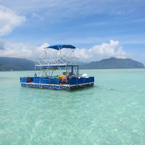 This was my eighth trip to Hawaii, but it was my first experience at the sandbar. The knee-deep water in the middle of the ocean was very mysterious, and the contrast between the sand and the sea was beautiful. When we went, it was not the season for the sand to be exposed, but I would like to visit again during low tide. I thought the staff was friendly and their service was good, but I wish they would refrain from smoking at the sandbar. Even though there are no legal restrictions, I wonder why anyone would smoke in such a beautiful natural place. There were even comments encouraging smoking among participants, and I saw people walking around the sandbar with cigarettes in their mouths. It was uncomfortable on the water.