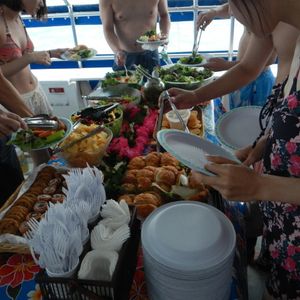 Above all, the warm and delicious hamburger after playing in the sea was exceptional! Also, after snorkeling, they provided hot drinks to warm us up, and the sweet hot chocolate was the best. The only downside was that the time spent seeing the sea turtles was shorter than I expected.