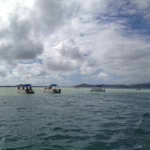 ボートの調子が悪くて出発が遅れることがなければ、もうちょっと浅かったのかなあ、と思いました。足元は白い珊瑚の砂で、クアロアの山々も見えて、とてもきれいでした!