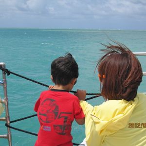 サンドバーの近く、ボートがとまったところは腰上くらいの深さで、そこからサンドバーを目指して歩きました。浅いところで降りれるのかと思っていたので、残念ながら祖母には無理でしたが、船上だけでも楽しかったようです。