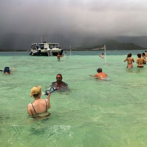 It seems that the weather around the sandbar can be unstable. When I participated, it was sunny and about 28 degrees in Waikiki, but Kaneohe Bay was cloudy with some rain. However, I was able to see the sandbar, so it was still a lot of fun.