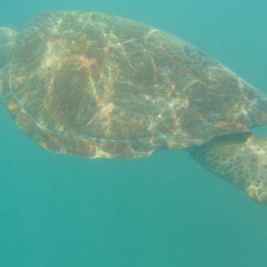 シュノーケリング中にはキャプテンの知り合いのカメさんにも会えました。人に慣れているのか、すごく近くまで来てくれました。