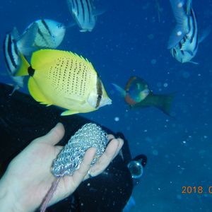 It was a medium-sized boat, so we experienced a bit of swaying (maybe a little more than expected), but it was my first time experiencing this. Since there was a bait bag attached, I gradually released some, and tropical fish about 20 centimeters long quickly gathered around, which was adorable. We had plenty of time for diving, and the instructor, who also acted as the photographer, gestured underwater so we could understand well, making it enjoyable without any stress. My wife seemed to have a bit of difficulty with the oxygen tank, but there were no emergencies, and we were able to have fun. The only downside was that even though we had an early morning gathering, I ate a muffin and coffee, which made me feel sick due to the swaying. About half of the other ten people seemed to experience seasickness as well. I think taking motion sickness medication before leaving the hotel would be necessary.