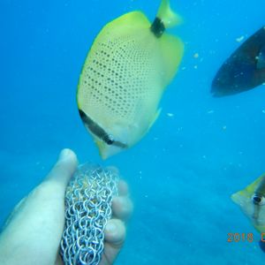 中型ボートでしたので若干のうねり(少し大きいかな?)を受けましたが一番はじめに体験しました。えさ袋が付いていたので少しずつ出すと20センチ位の熱帯魚がどんどんよった来て可愛かったです。潜水している時間も十分あり、インストラクター兼カメラの方も水中で良く分かるように手招きしてくれてストレス無く楽しかったです。家内が酸素ボンベの酸素が合わなくて若干苦しかったようですが、緊急浮上などは無く楽しめました。唯一、朝早い集合なのにマフィンとコーヒーを食べていったので、うねりで全部リ○ースして苦しみました。他の10人ほどの半分は同じく船酔いしたようです。たぶんホテル出発前に酔い止めが必要だと思います。