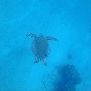 運が良ければ海亀に会えるということでしたが、参加当日は二頭もの海亀が船の周りを泳いでいて、水中に潜った時もすぐ近くで見ることができました。