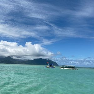Aloha! This is Captain Bruce's Paradise of the Sea Tour. Thank you very much for participating. It was sunny, followed by a sudden downpour. I hope you enjoyed the unique weather that Hawaii has to offer. The view of the sandbar in the rain shows a different, beautiful side, doesn't it? I'm glad you were able to see some turtles as well! We all sincerely look forward to your next visit.
