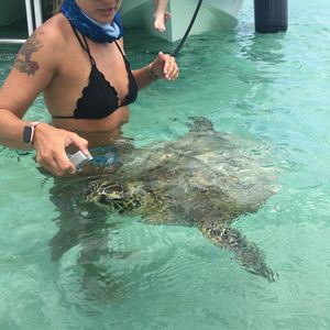 This was my first experience at the sandbar. The water was up to my knees, but it was really nice. A sea turtle came right up close to me, and I was so moved. The food was also very delicious.