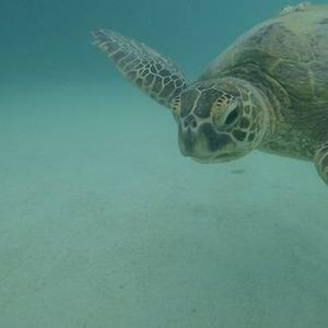 The sea turtles were friendly and came to visit multiple times. They didn't run away even when I got close; they just swam around me.