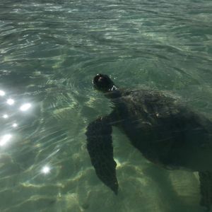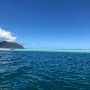 It was a wonderful day with no wind, and the view of the distant Kualoa mountains was crystal clear. I checked the low tide times during my trip and participated in the morning Heaven on the Sea tour. Surrounded by coral, I was able to swim with sea turtles while snorkeling. I also got to see many colorful tropical fish, and the marine activities were plentiful and very enjoyable. Next time, I would like to go when it’s - feet.