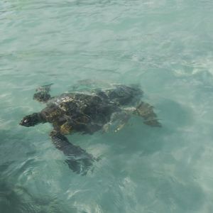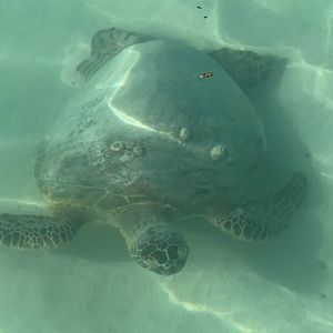 As soon as we arrived, we were able to see sea turtles swimming near the anchored boats, and during snorkeling, we saw sea turtles resting on the coral and many fish.