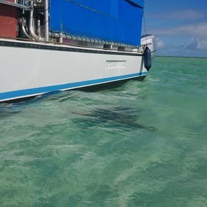 The captain also tried to keep the boat steady and moved slowly. After about 20 minutes on the boat, we arrived at the planned beach location. Unfortunately, it wasn't a beach, but the shallow waters were calm and very beautiful.