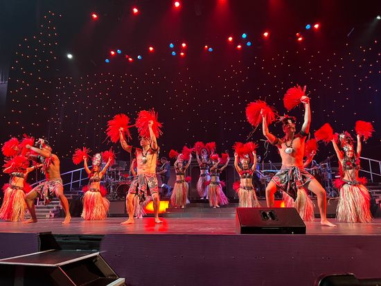 ステージではフラやタヒチアンダンスも見れたしエルビスプレスリーとマイケルジャクソンがすごーく似てたし曲やダンスも懐かしいし時差ぼけで眠かったにも関わらず最高のパフォーマンスを見せていただきました。