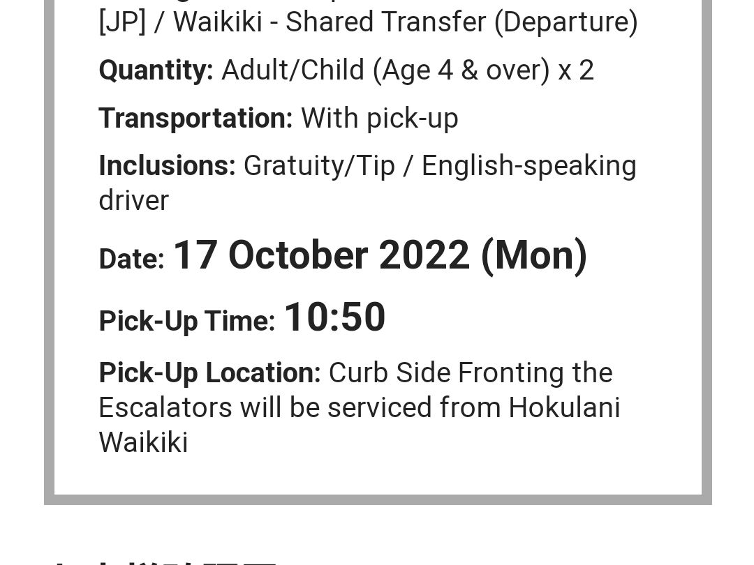 毎回ハワイ旅行の際に、空港⇔ホテル間の送迎でお世話になっています。