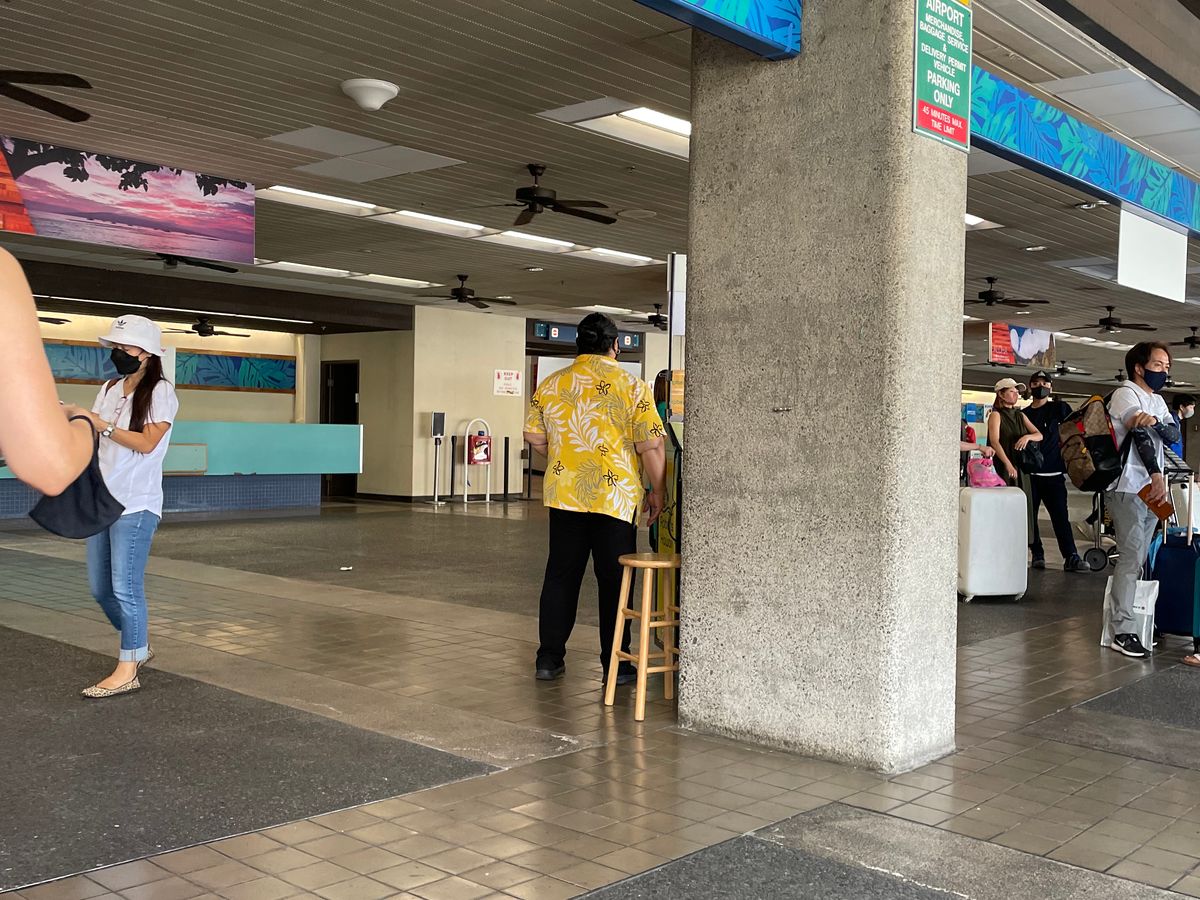I booked a shuttle from the hotel to Honolulu Airport, and on the day of the trip, I waited at the meeting point, but the bus didn't arrive even after some time. When I went outside, I found it stopped a little further back, unloading luggage. Most of the passengers were Americans, with only one or two Japanese, including us. Usually, for optional tours, they come to call you in the lobby, but this time there was none, and if we hadn't noticed the bus in the back, we might have been left behind. This shuttle operates entirely in English, so for those who are not confident in their English skills, it might be a bit risky as you may not know which terminal to get off at.