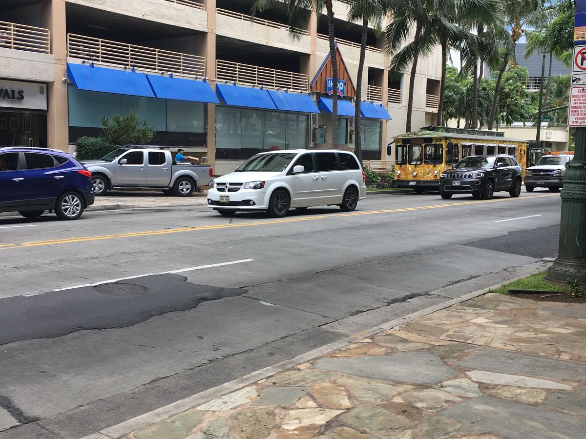 ワイキキ内のホテルを廻り、また私をピックアップしたホテルに戻り、最初に乗れなかった1組が乗り込んできました。