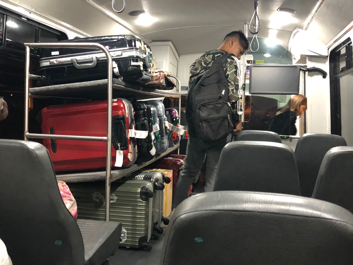 I arrived at the airport feeling excited, and there was a woman at the Roberts information desk. She had no smile, didn’t make eye contact, and casually draped a shell lei around the necks of my family of four. I was taken aback when it got caught on my ear and thought, "What!?" I felt like my trip was starting off on the wrong foot and quickly took off the lei. Of course, the woman didn’t notice at all. She just told us to wait here for 10 minutes. I have no complaints about the bus driver, but I won’t be using this service again.