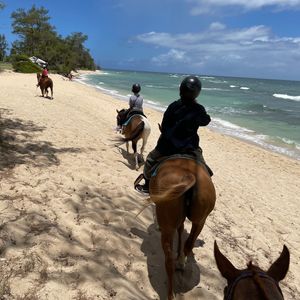 Relaxing horseback riding on the white sands of the North Shore. The horses were so smart, I can only say it was the best.