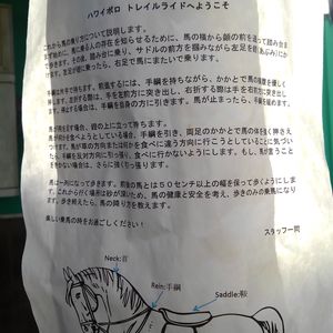 Before riding, you receive a briefing from the staff. Everything is in English, but there is a Japanese explanation in the waiting room, so it's not a problem if you can't understand English. The horses are smart, cute, and accustomed to people.