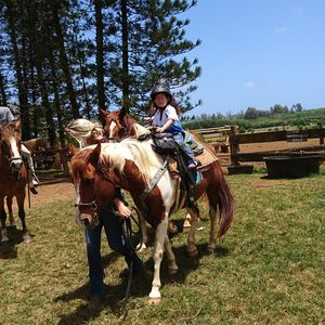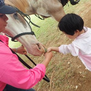 小さな子供ができる数少ないアクティビティで人も少なくゆっくりとした雰囲気でスタッフの方も優しくて家族で楽しむことが出来ました。乗馬しない方も歩いて付き添う事が出来るので乗馬中の写真なども撮ることができます。クアロアランチのように団体で、ではなく家族オンリーの時間を過ごす事ができる素敵な思い出になりました。