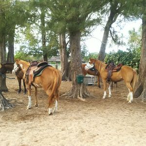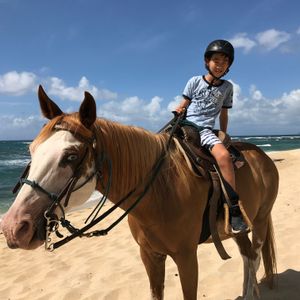 It was the best horseback riding experience. The explanations in English were very easy to understand, even for my 12-year-old and 8-year-old children. The people who accompanied us were fun and great! The horseback riding lasted a full hour along the coast, and we enjoyed the beautiful scenery and the clarity of the water in Haleiwa. The location was also easy to get to. The sign is quite simple, so you might wonder if it's the right place, but I think it has a nice Hawaiian feel to it. I believe it would be easy to find with a navigation system.