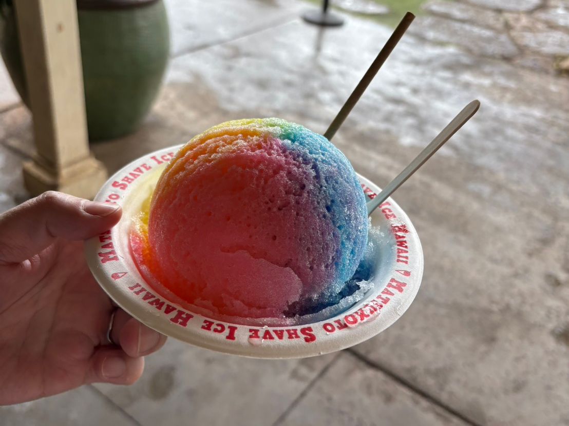 On Sunday, we also enjoyed the Huli Huli chicken without any wait, and it was delicious. At Matsumoto Shave Ice, I had the chance to talk with the owner, Mr. Matsumoto, and we were able to get our treats smoothly without waiting in line.