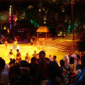 We started with a show that lasted about 30 minutes, then rode in a canoe, watched another show for about 30 minutes, had a buffet dinner, enjoyed some free time, and finally watched a night show.