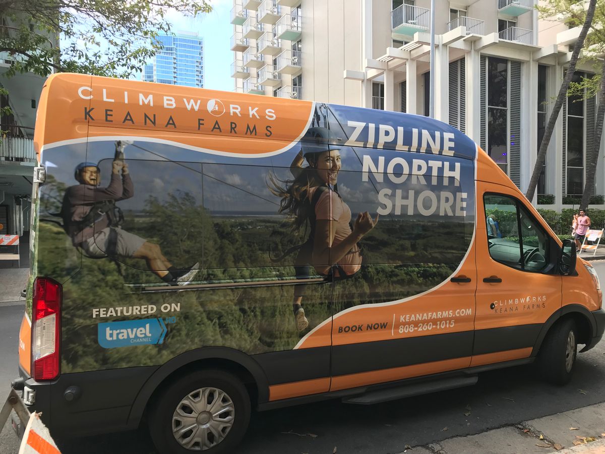 It’s a car marked with "Keana Farm Zipline," so you can just wait at the meeting point.