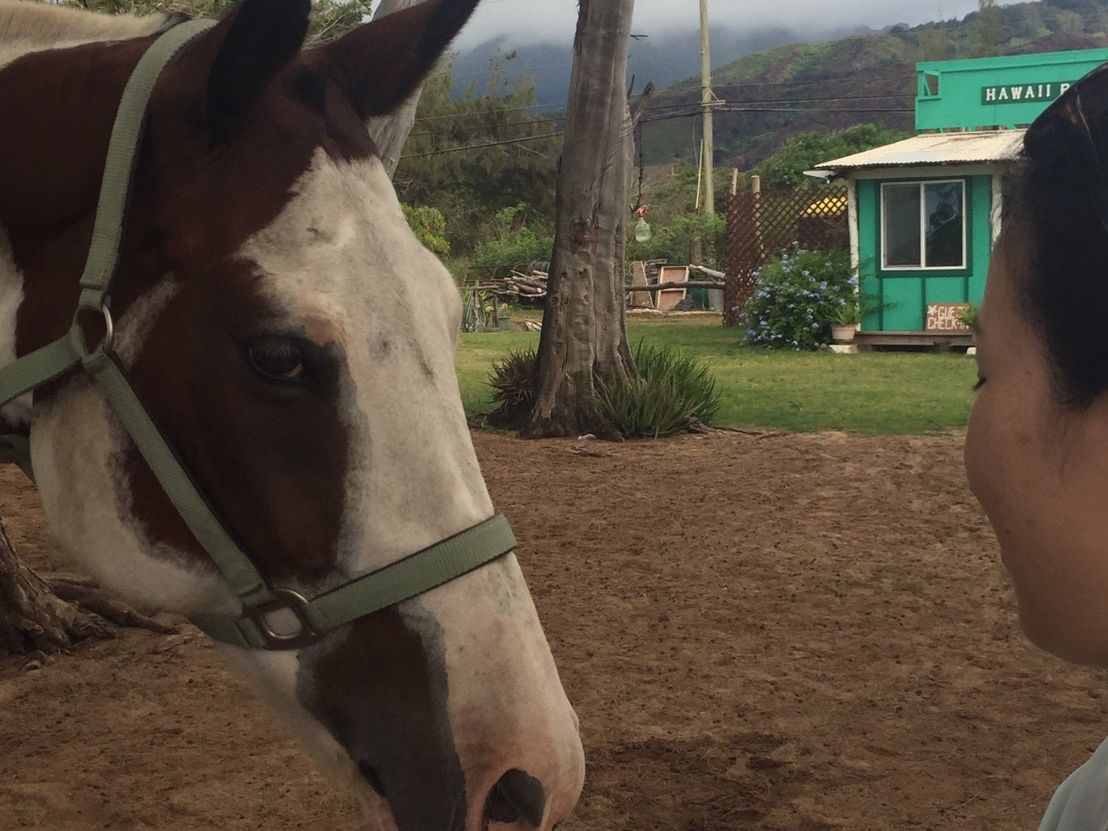 I tried to go to Kualoa Ranch, but I couldn't make a reservation. So, I participated in this instead. Since there was no shuttle service, I was unsure how to get there, but I took a bus to the North Shore and enjoyed it thoroughly. Calling an Uber for a taxi was quick. Riding horses while gazing at the quiet sea without any tourists was elegant! Afterward, I was even allowed to feed the horses bananas.